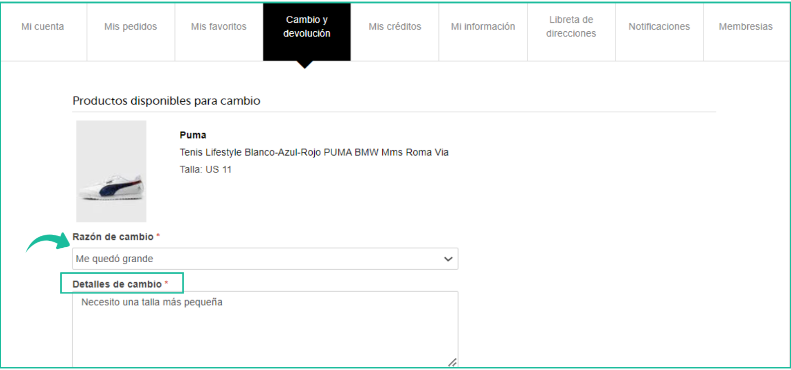 | Cambio de Talla | Despacharemos el nuevo producto. Podrás hacer seguimiento en "Mis Pedidos". |